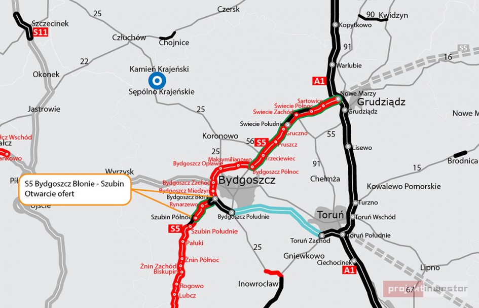 Oferta konsorcjum PBDiM Kobylarnia i Mirbudu, warta 359,43 mln złotych okazała się najtańsza w przetargu na wyłonienie nowego wykonawcy piątego odcinka drogi ekspresowej S5 Bydgoszcz Błonie - Szubin Północ. Łącznie w przetargu wpłynęło sześć ofert.