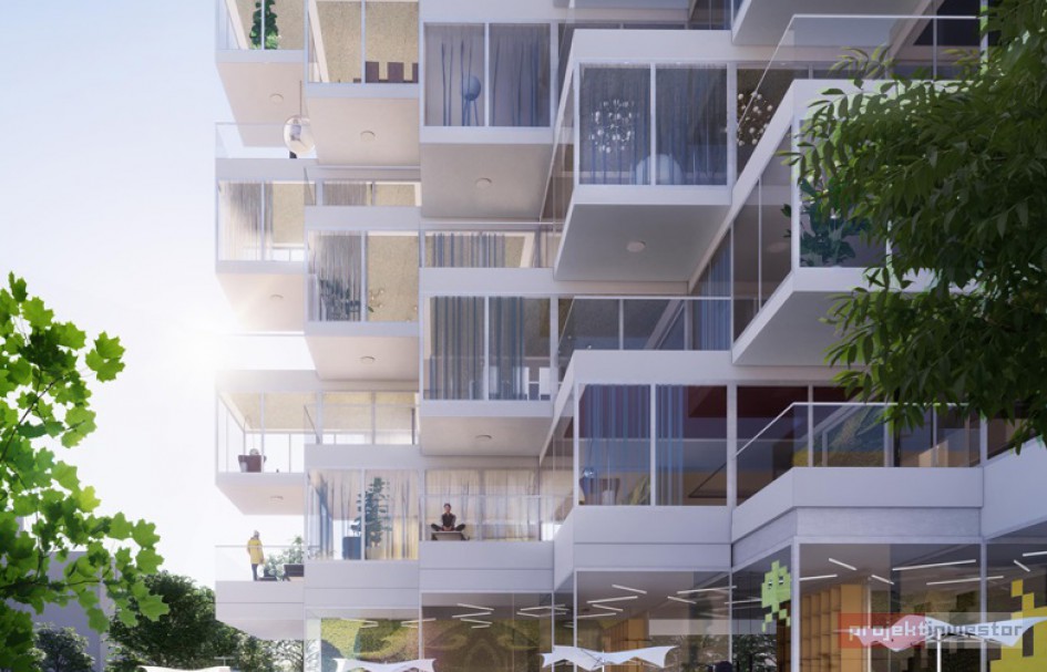 Projektanci pracowni JEMS Architekci zaproponowali budynek posiadający cztery fronty. Od zachodu zaplanowano przeszklone i akustyczne obudowy loggi, natomiast od wschodu i północy pojawi się rozrzeźbiona forma elewacji zbudowana zestrukturalnie ułożonych wykuszy i loggi.