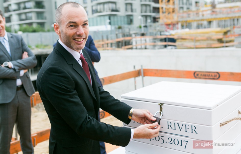 Uroczyste podpisanie aktu erekcyjnego Angel River nawiązywało do miejsca powstawania inwestycji. Złożono go w szklanej muszli symbolizującej rzekę i naturę. Razem z pamiątkami z Przedmieścia Oławskiego, muszla została następnie schowana do skrzyni i przy pomocy dźwigu przeniesiona w miejsce wmurowania jej w podwaliny budynku.