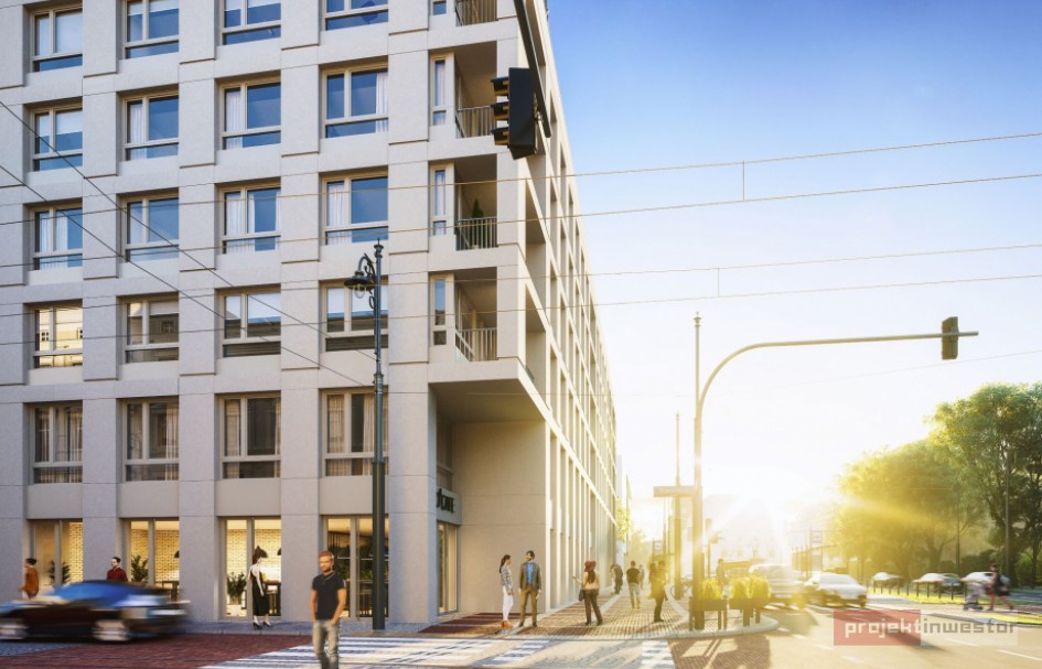 Plac budowy znajduje się na rogu ulic Nowomiejskiej i Ogrodowej. Za niecałe dwa lata w tym miejscu zostanie oddany do użytku obiekt w kształcie litery „L”, oferujący mieszkania oraz lokale użytkowe.