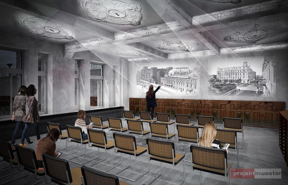 Projekt wprowadza podział parterowej kondygnacji budynku na strefy: wejściową, komunikacyjną, ekspozycyjną i wielofunkcyjną oraz przestrzeń dla ekspozycji czasowych. Dodatkowo w części wystawienniczej wyodrębniono przestrzenie tematyczne: urbanistyczną i architektoniczną, które będą funkcjonować autonomicznie. Pierwsza z nich zostanie wzbogacona o tzw. warsztat makiet, czyli info-box, gdzie architekci umieszczą m.in. współczesną makietę centrum Łodzi oraz trzy inne pokazujące kolejne fazy jego rozwoju.