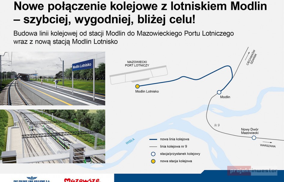 PKP Polskie Linie Kolejowe ogłosiły przetarg na budowę nowego połączenia kolejowego do Mazowieckiego Portu Lotniczego Warszawa-Modlin. Inwestycja realizowana jest we współpracy z samorządem województwa i ma zapewnić bezpośredni dojazd pociągiem do terminala lotniska.