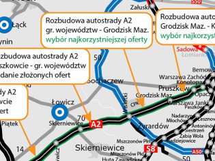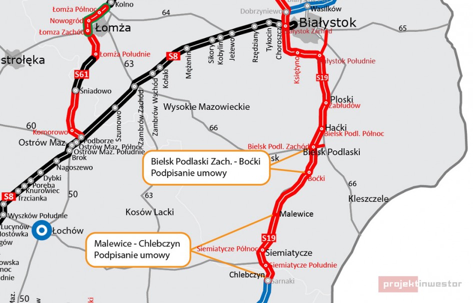 Kontrakty dotyczą projektu i budowy łącznie 37 kilometrów przyszłej "ekspresówki" w ciągu Via Carpatia. To ostatnie etapy od Białegostoku w kierunku południowym, do Chlebczyna w województwie mazowieckim, na które nie było dotąd wybranych generalnych wykonawców.