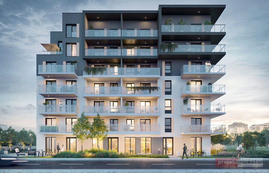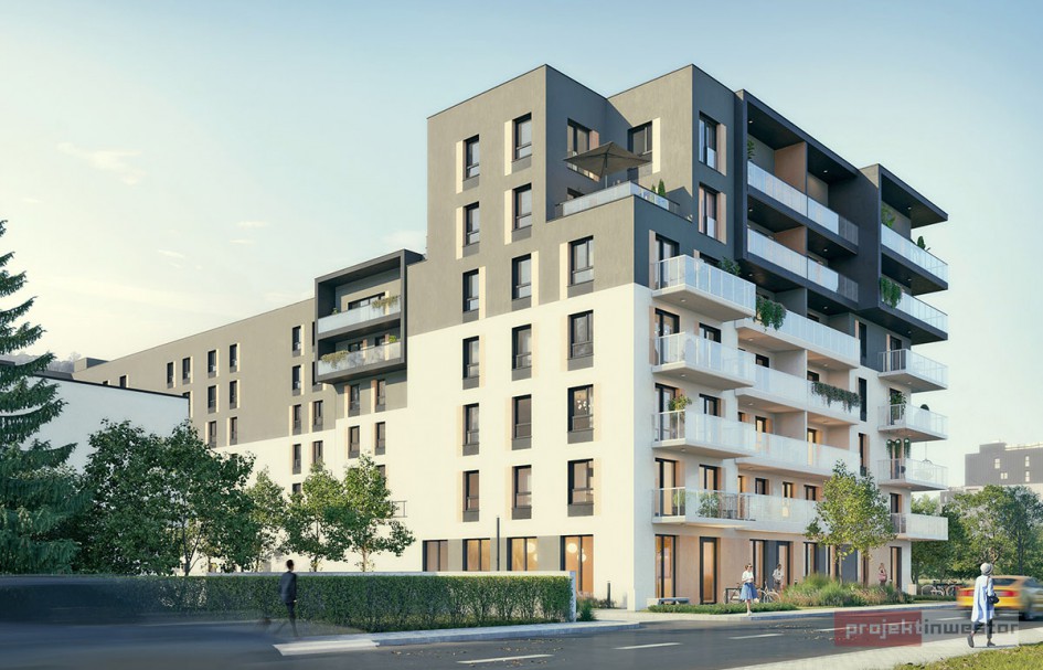 Deweloper zaplanował inwestycję przy ul. Ptasiej 28. Budynek utrzymany w kolorach bieli i szarości zawierać będzie 118 mieszkań, ulokowanych na sześciu piętrach.