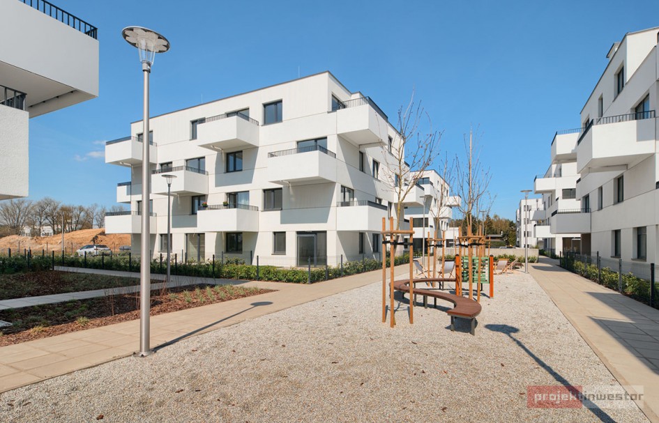 Każdy lokal posiada balkon lub ogródek, a budynki wyposażono w windy obsługujące również poziom garażu podziemnego. Uzupełnieniem są miejsca postojowe – zarówno w hali, jak i na terenie zewnętrznym. W projekcie przewidziano także instalacje fotowoltaiczne, które zasilają części wspólne, ograniczając koszty eksploatacyjne.