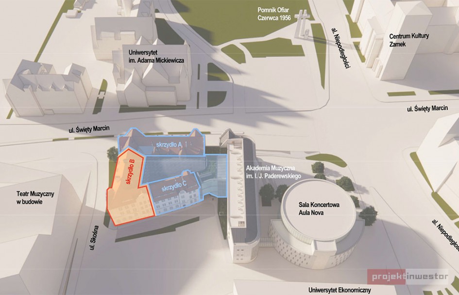 Trzeci projekt realizuje Akademia Muzyczna im. Ignacego Jana Paderewskiego w Poznaniu. Inwestycja pn. „Przebudowa i remont zabytkowego budynku Akademii Muzycznej – Etap II” obejmuje dwa pozostałe skrzydła gmachu przy ul. Św. Marcin 87 oraz zadaszenie wewnętrznego dziedzińca. Całkowita wartość projektu to 34 574 066,52 zł, z czego 17 977 152,74 zł stanowi dofinansowanie unijne.