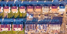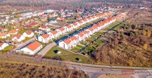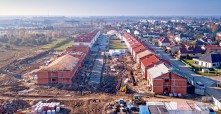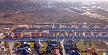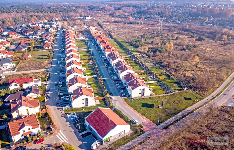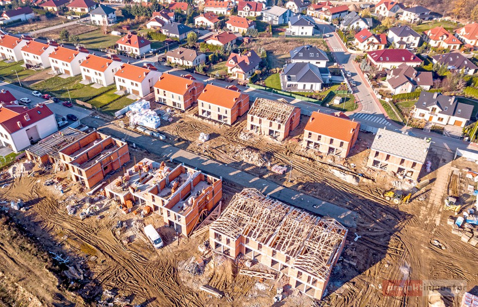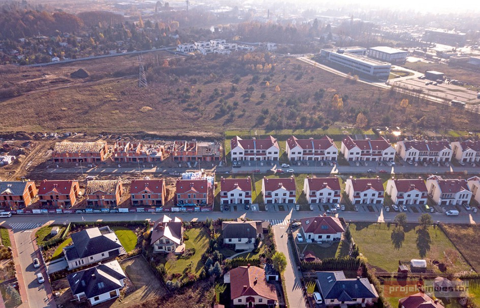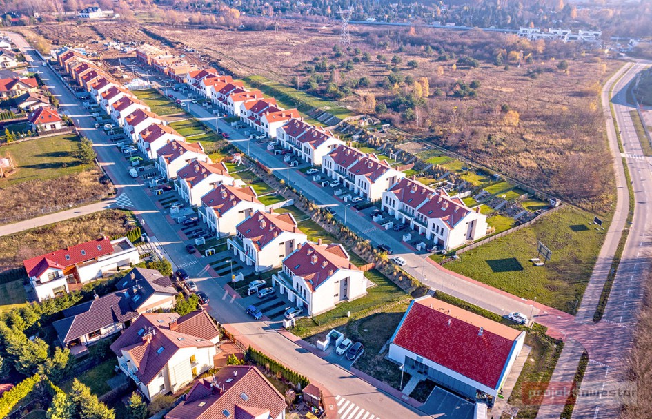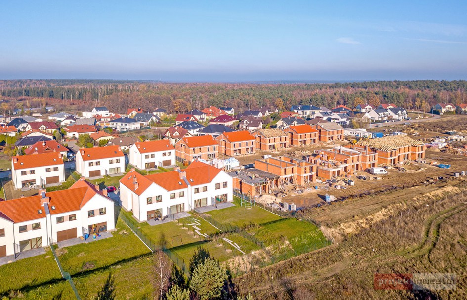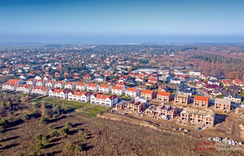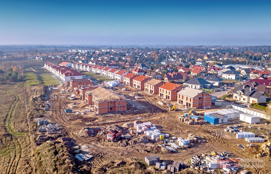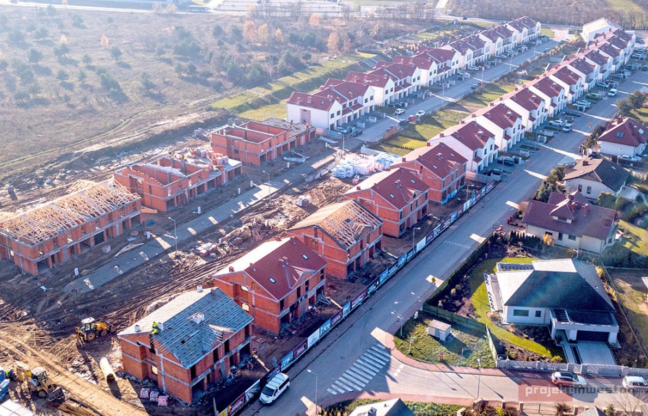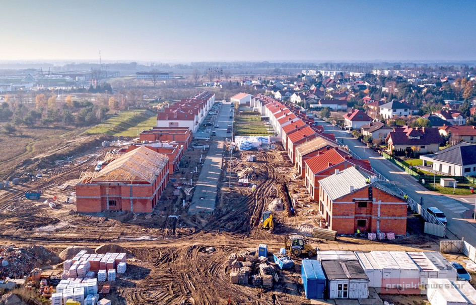 Prezentujemy najnowsze zdjęcia z drona z budowy osiedla domów szeregowych w podpoznańskich Zlotnikach.