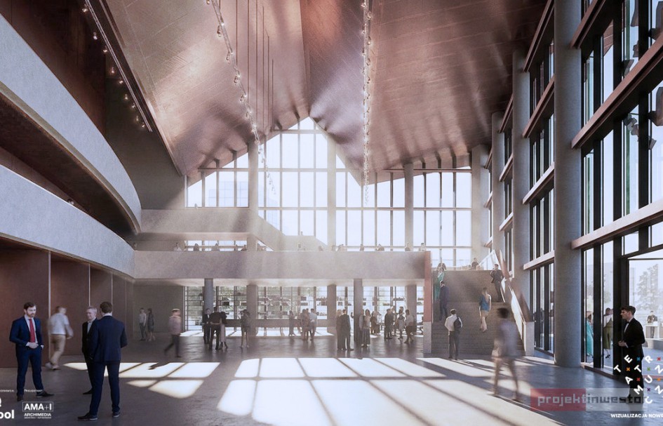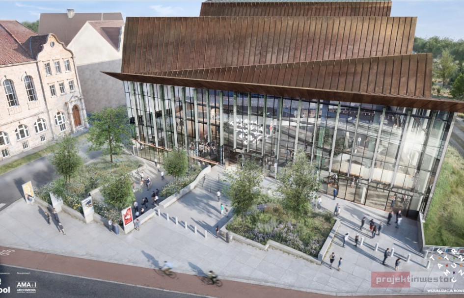 Teatr Muzyczny w Poznaniu opublikował nowe wizualizacje swojej przyszłej siedziby powstającej przy ul. Św. Marcin w Poznań. Projekt został zaktualizowany i dopracowany m.in. w oparciu o szczegółowe badania wibroakustyczne oraz analizy wpływu otoczenia komunikacyjnego na funkcjonowanie obiektu. Budowa, realizowana przez Dekpol Budownictwo, przebiega zgodnie z harmonogramem – na placu budowy wykonano już ścianki szczelinowe, a obecnie trwa wybieranie gruntu pod podziemną część budynku.