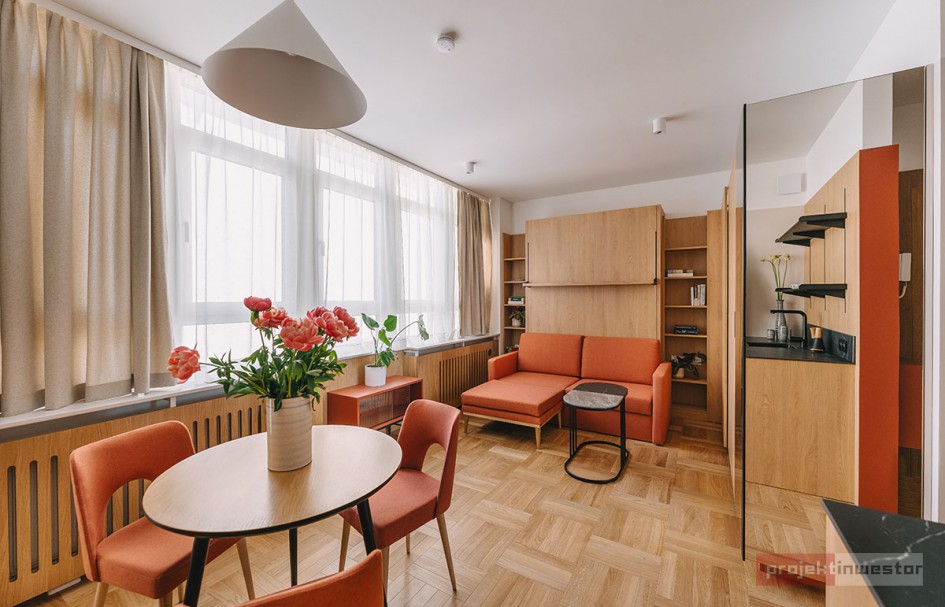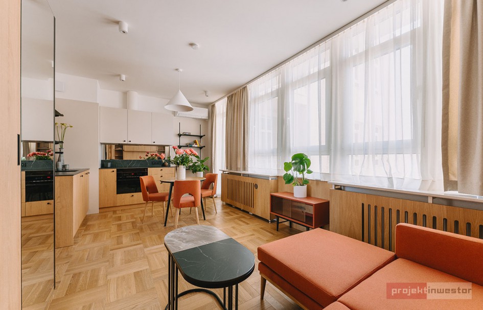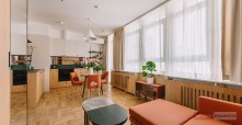Odnowiony budynek oferuje 40 mieszkań na wynajem długoterminowy, zaprojektowanych z myślą o funkcjonalności, świetle i estetyce nawiązującej do lat 70. i 80. Każde mieszkanie wyróżnia się jednym z trzech wariantów kolorystycznych, a panoramiczne okna oraz przestronne parapety wzmacniają poczucie otwartości. Dla mieszkańców przewidziano zielony taras na dachu nowej części budynku.