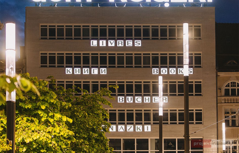 Dom Książki zachował swój modernistyczny charakter, oddając hołd projektowi Bogdana Bednarka i Zygmunta Łomskiego. Ceramiczna elewacja, wstęgowe przeszklenia i charakterystyczny neon zostały pieczołowicie odrestaurowane, a autentyczne detale, takie jak kamienna mozaika w holu oraz kasetony z napisem "książka", przywrócono do dawnej świetności. Wnętrza odświeżono zgodnie z zasadami modernizmu, wykorzystując materiały typowe dla epoki, takie jak czeczot dębowy i ornamentowe szkło oraz wprowadzając nowoczesne elementy jak liniowe oświetlenie.