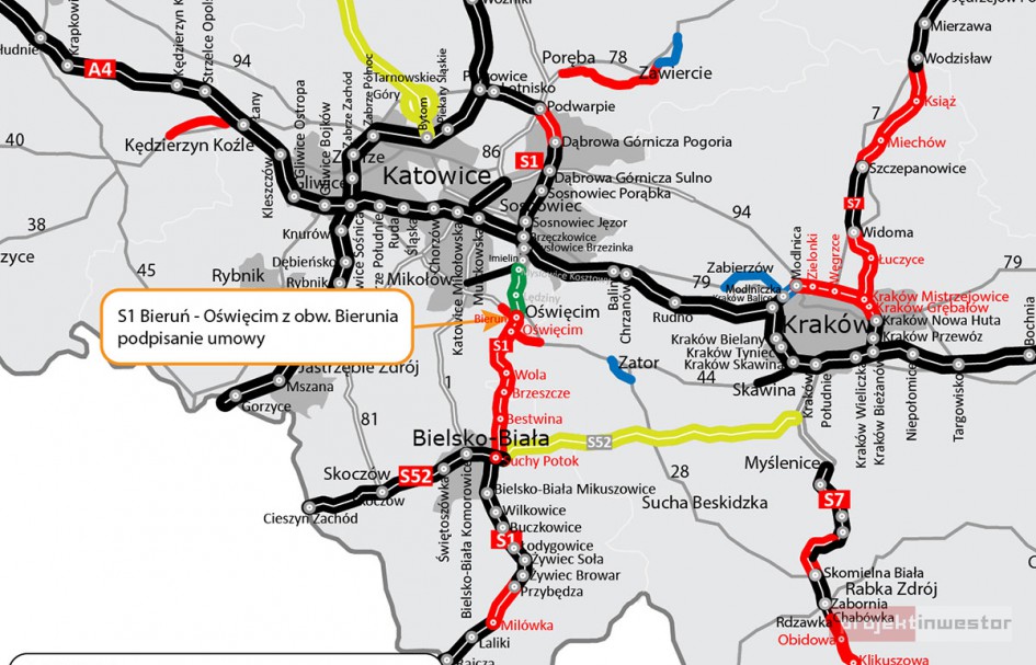 Podpisane porozumienie dotyczy zaprojektowania i budowy fragmentu trasy S1 Bieruń-Oświęcim. Parafowanie kontraktu, jest zakończeniem jednego z dwóch przetargów, zmierzających do domknięcia całego nowego przebiegu S1 między Mysłowicami i Bielskiem-Białą.