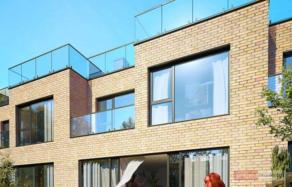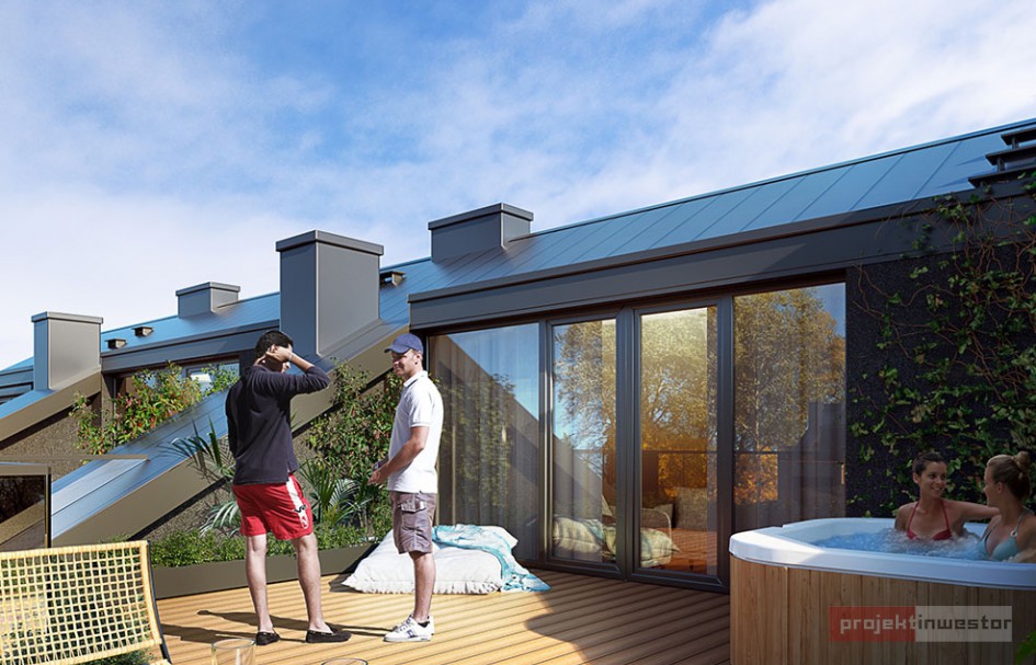 Wszystkie domy powstaną w zabudowie szeregowej. Będą miały trzy kondygnacje nadziemne i jednakową powierzchnię ok. 225 mkw. Do każdego przynależeć będą ogródki o powierzchni od ok. 140 do 474 mkw.