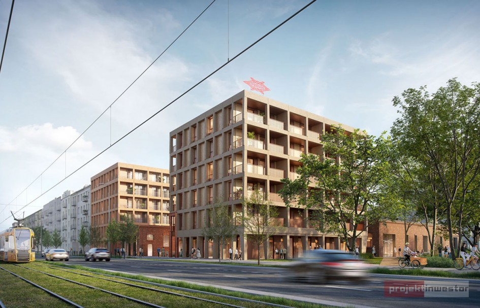 Architektura nowego zespołu odwołuje się do przemysłowego rodowodu miejsca poprzez rozczłonkowaną formę, rytmiczne elewacje oraz zastosowanie materiałów takich jak beton czy elementy o charakterze technicznym. Zróżnicowana kolorystyka – cieplejsza od strony ulicy i chłodniejsza wewnątrz kwartału – dodatkowo porządkuje przestrzeń i podkreśla jej warstwową strukturę.