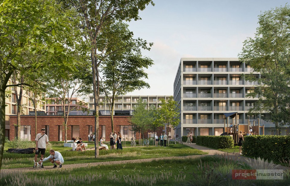 Kluczowym założeniem projektu jest integracja nowej zabudowy z istniejącą tkanką przemysłową. Historyczne hale fabryki Perun – jedne z lepiej zachowanych przykładów architektury przemysłowej tej części miasta – zostaną poddane konserwacji i zaadaptowane na funkcje usługowo-handlowe. Nowe budynki nie będą dominować nad istniejącą zabudową, lecz ją uzupełniają, zachowując czytelność historycznego układu.