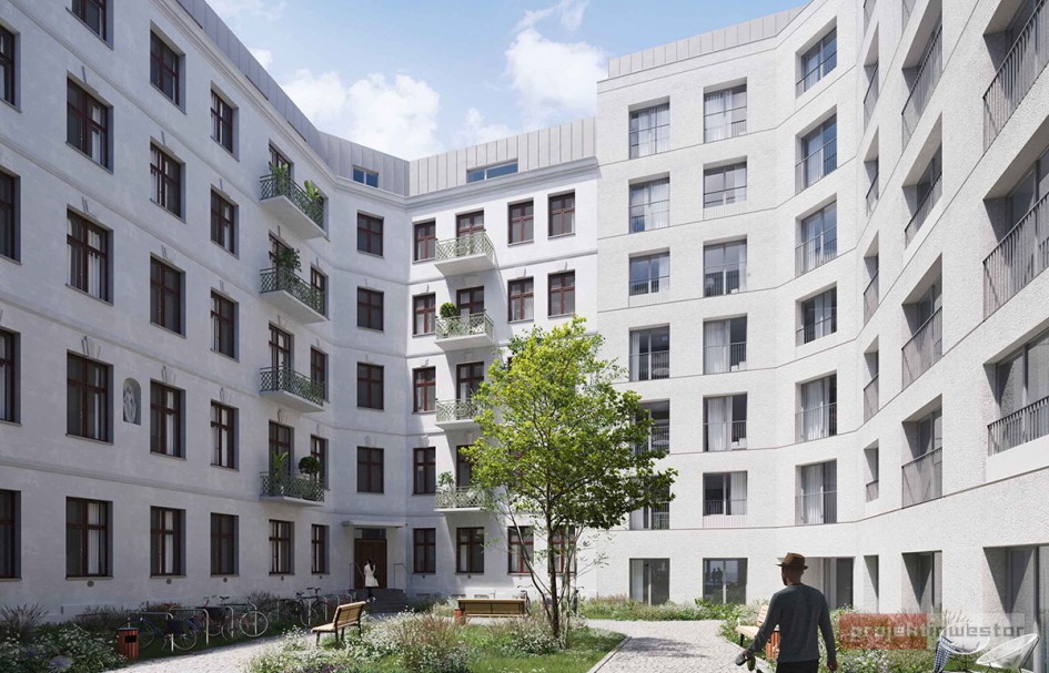 Kameralna oficyna zapewni 30 lokali w formacie kawalerek oraz dwupokojowych i z powierzchniami od nieco ponad 25 do prawie 50 mkw. Deweloper zachowa w budynku pierwotne elementy balkonów oraz drewnianą klatkę schodową. Oryginalne będą również oznaczenia lokali i kolorystyka. Wysokość mieszkań wyniesie tu maksymalnie prawie 3,40 metra, natomiast zewnętrzna elewacja wykończona zostanie tynkiem renowacyjnym.