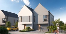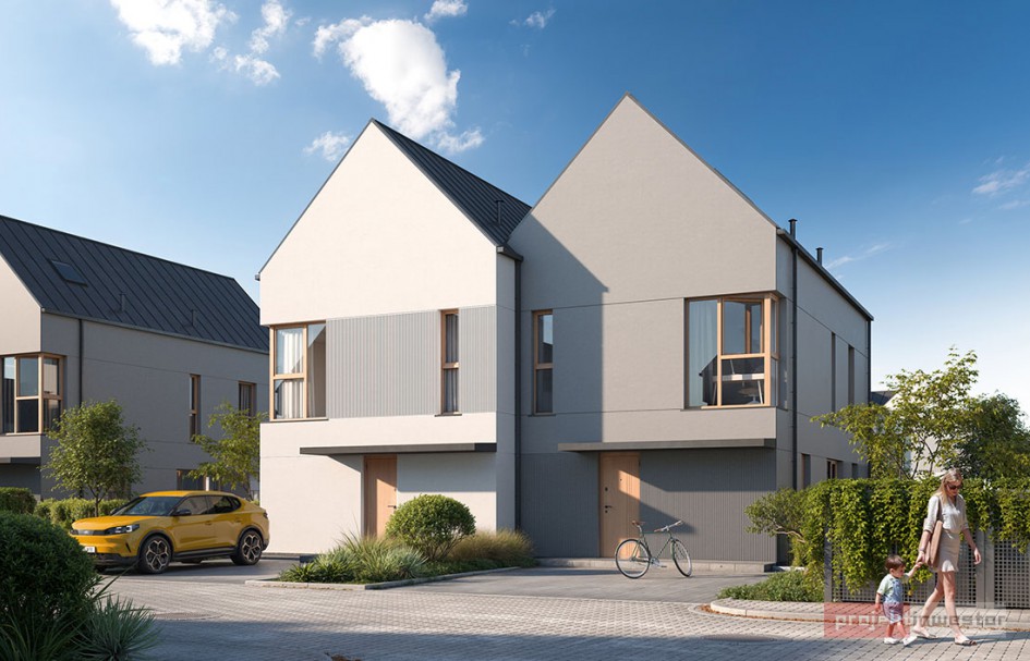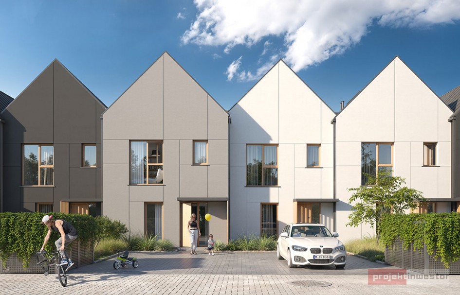 Istotnym elementem projektu jest integracja części mieszkalnej z przestrzenią zewnętrzną. Każdy dom posiada prywatny ogród, którego powierzchnia – w zależności od segmentu – sięga nawet kilkuset metrów kwadratowych. Rozwiązanie to stanowi integralną część koncepcji funkcjonalnej, umożliwiając rozszerzenie strefy dziennej o przestrzeń rekreacyjną.