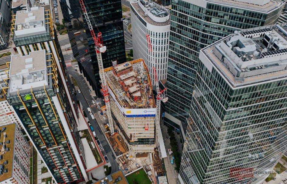 Budowa drugiej fazy kompleksu biurowego Skyliner przy Rondzie Daszyńskiego w Warszawie osiągnęła półmetek – konstrukcja dotarła do 15. piętra, czyli połowy docelowej wysokości 130 metrów. Każde piętro powstaje w pięć dni, a zakończenie wszystkich prac przewidziano na koniec IV kwartału 2026 roku.