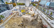 Obecnie realizowane są prace polegające na wykonaniu wykopu, którego obszar i głębokość codziennie się powiększają. We wrześniu z placu budowy wywieziono około 3,5 tys. ton ziemi i gruzu. Docelowo wykop ma osiągnąć 4 610 mkw. powierzchni oraz 10 m głębokości. W kolejnych tygodniach rozpocznie się betonowanie stropu garaży podziemnych.