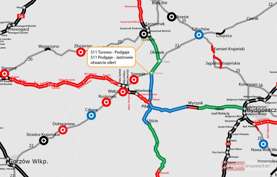 Generalna Dyrekcja Dróg Krajowych i Autostrad otrzymała łącznie czternaście ofert w przetargach na dwa odcinki drogi ekspresowej S11 między Szczecinkiem a Piłą. Propozycje wykonawców mieszczą się w przedziale od około 440 do 753 mln zł i wszystkie mieszczą się w zakładanym budżecie inwestora. Obecnie trwa analiza dokumentacji w celu wyboru najkorzystniejszych ofert.