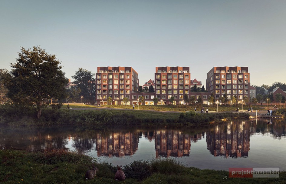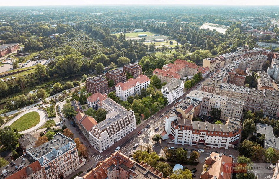 Istotnym elementem projektu jest zagospodarowanie terenów zielonych nad rzeką Oławą. Na obszarze inwestycji powstanie park o powierzchni około jednego hektara, obejmujący istniejący starodrzew, nowe nasadzenia oraz przestrzenie rekreacyjne. Przewidziano również rozwiązania związane z retencją wód opadowych oraz infrastrukturę dla rowerzystów.