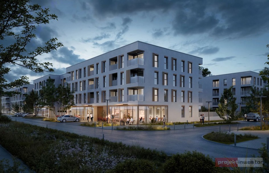 Zabudowa obejmuje budynki o trzech i czterech kondygnacjach. Elewacje utrzymane są w stonowanej kolorystyce – dominują odcienie bieli i szarości z detalami w kolorze jasnego brązu. Na parterach od strony parku, zaplanowano lokale usługowe.