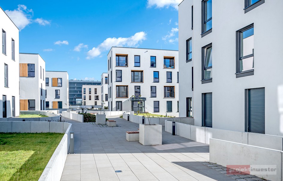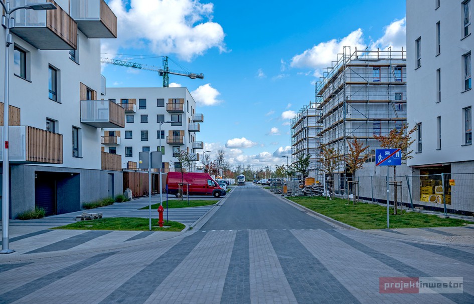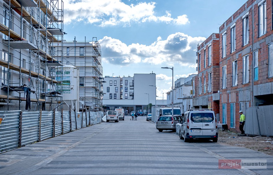 Najnowsze zdjęcia z budowy osiedla modelowego WuWa2 we Wrocławiu, realizowanego przez różnych deweloperów.