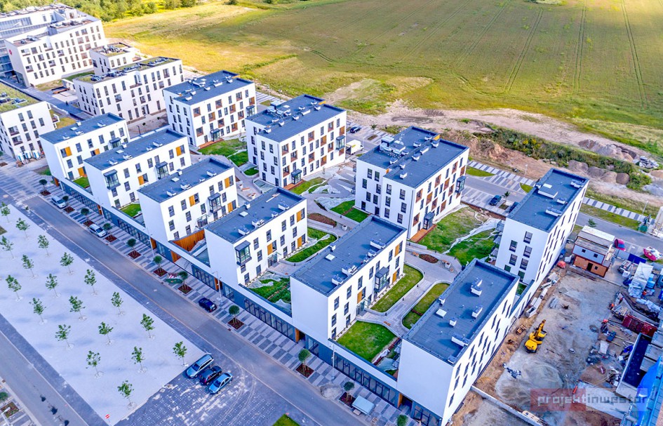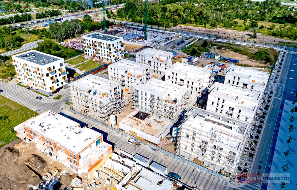 Najnowsze zdjęcia z budowy osiedla modelowego WuWa2 we Wrocławiu, realizowanego przez różnych deweloperów.
