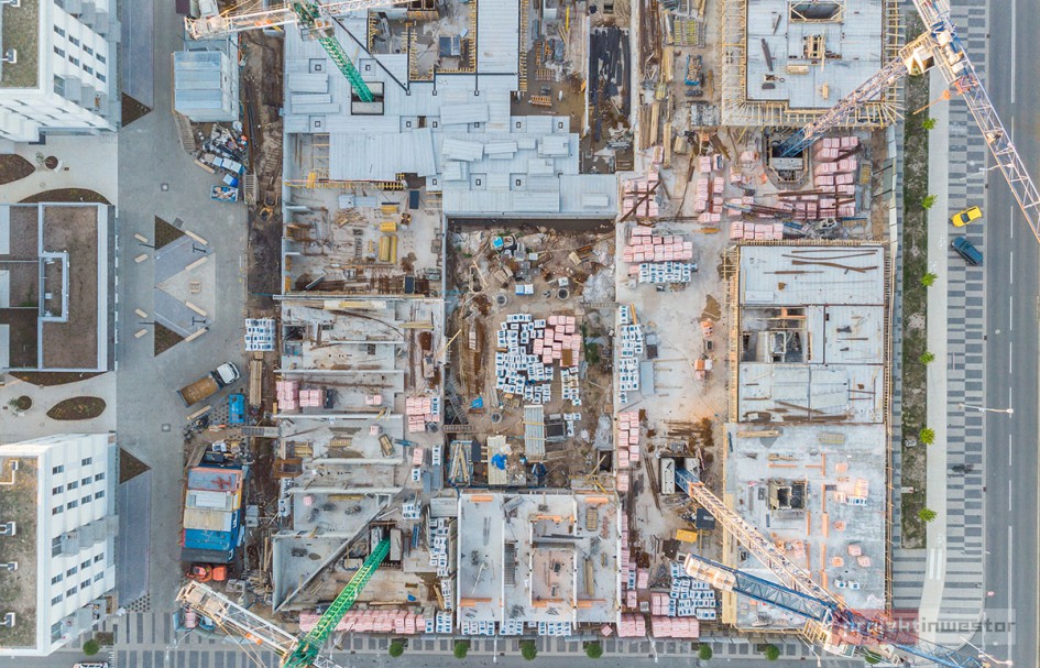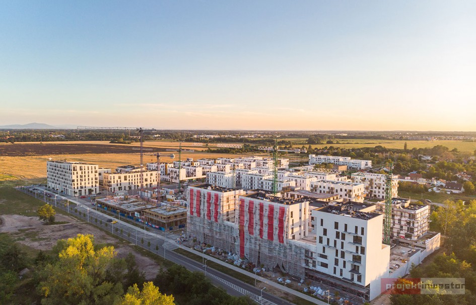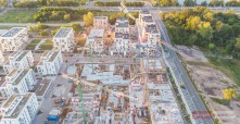 Najnowsze zdjęcia z budowy osiedla modelowego WuWa2 we Wrocławiu, realizowanego przez różnych deweloperów.