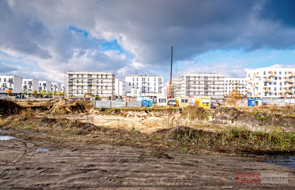 Najnowsze zdjęcia z budowy osiedla modelowego WuWa2 we Wrocławiu, realizowanego przez różnych deweloperów.