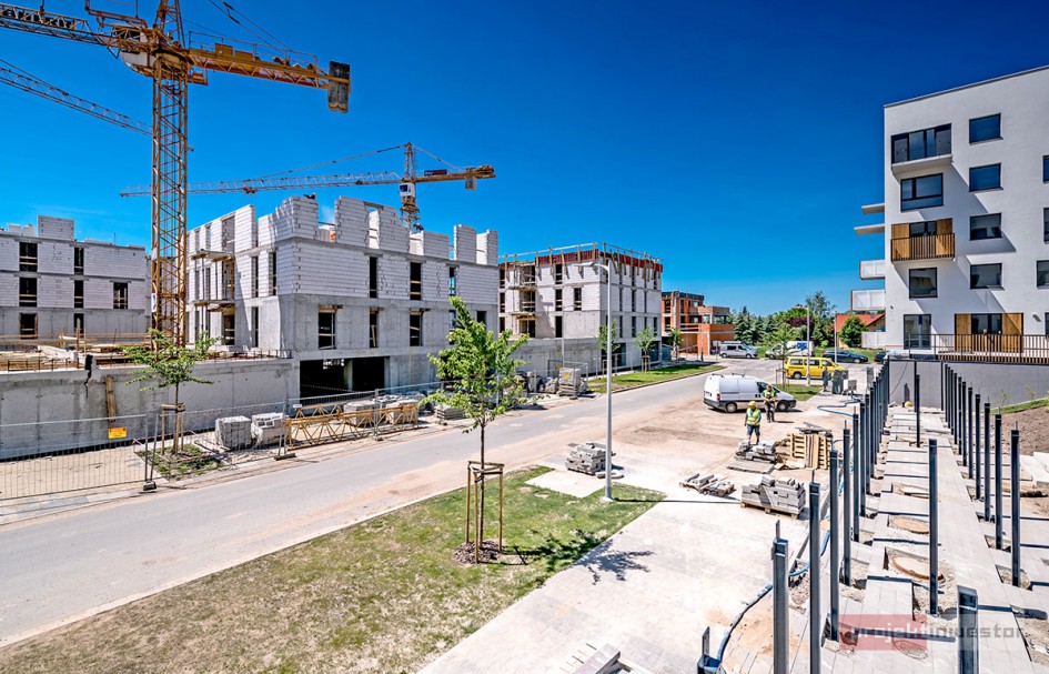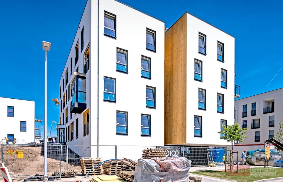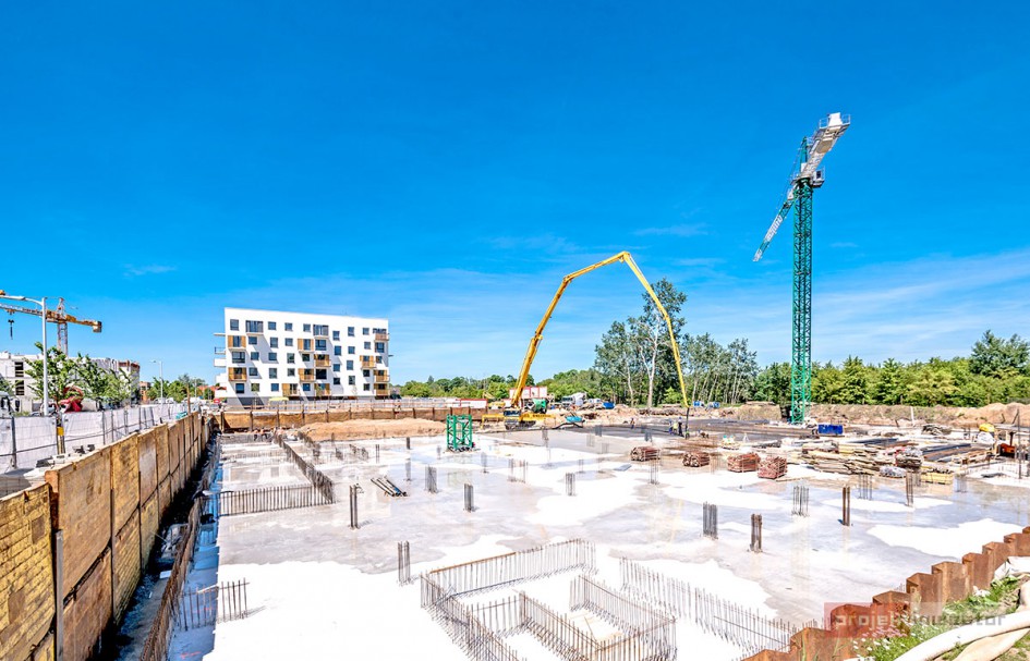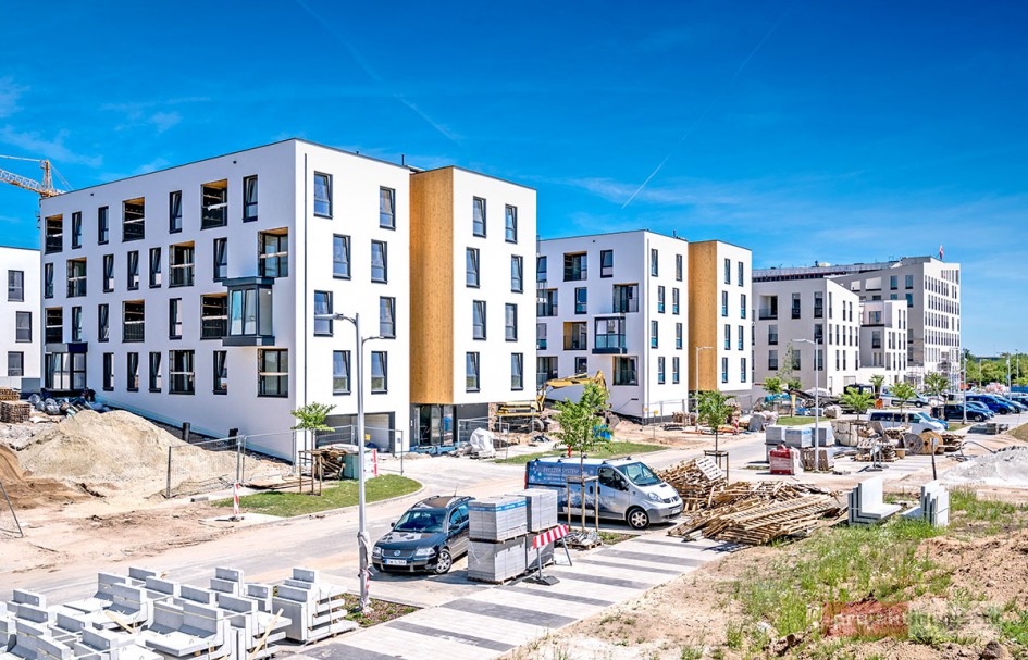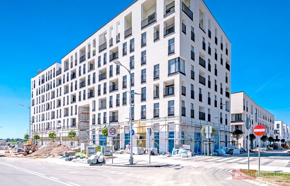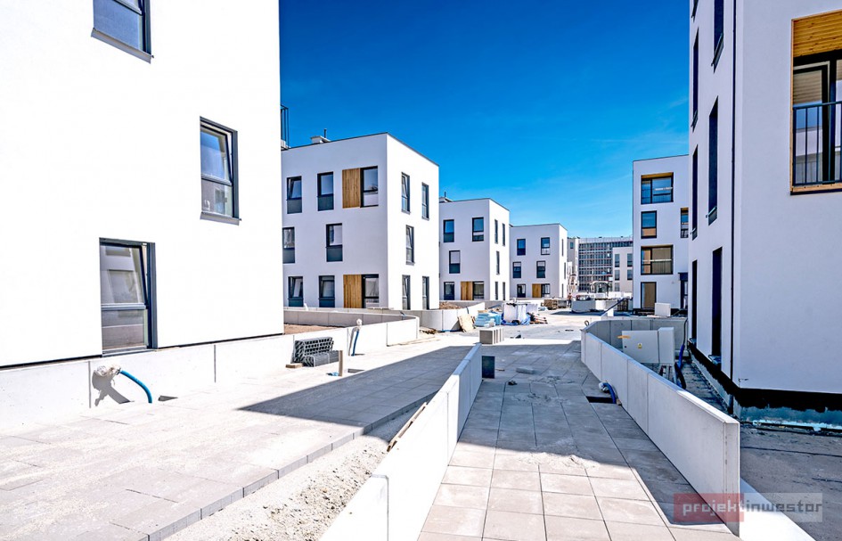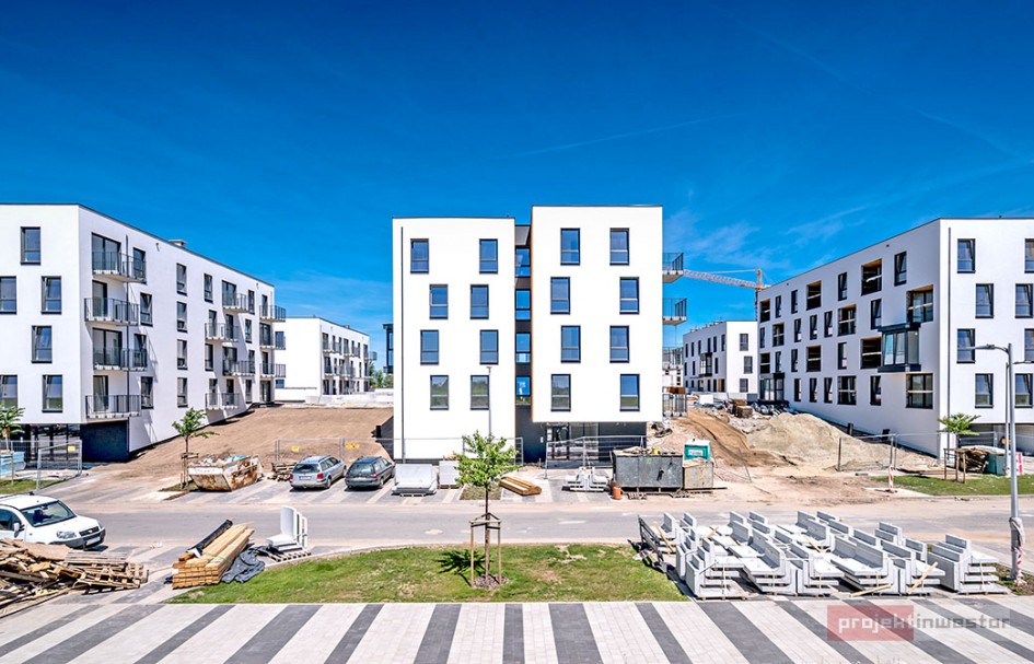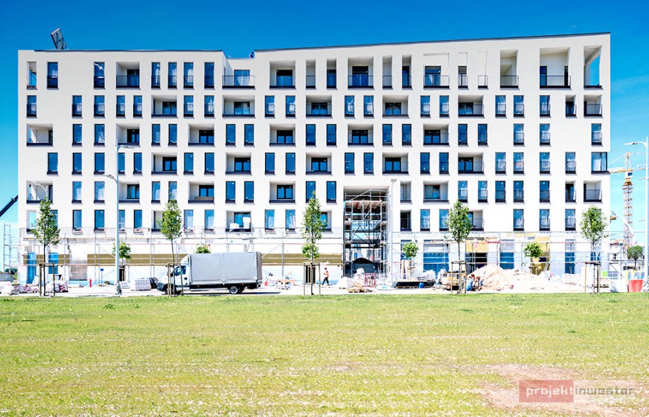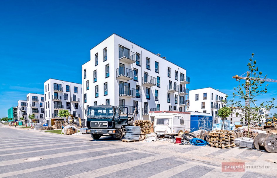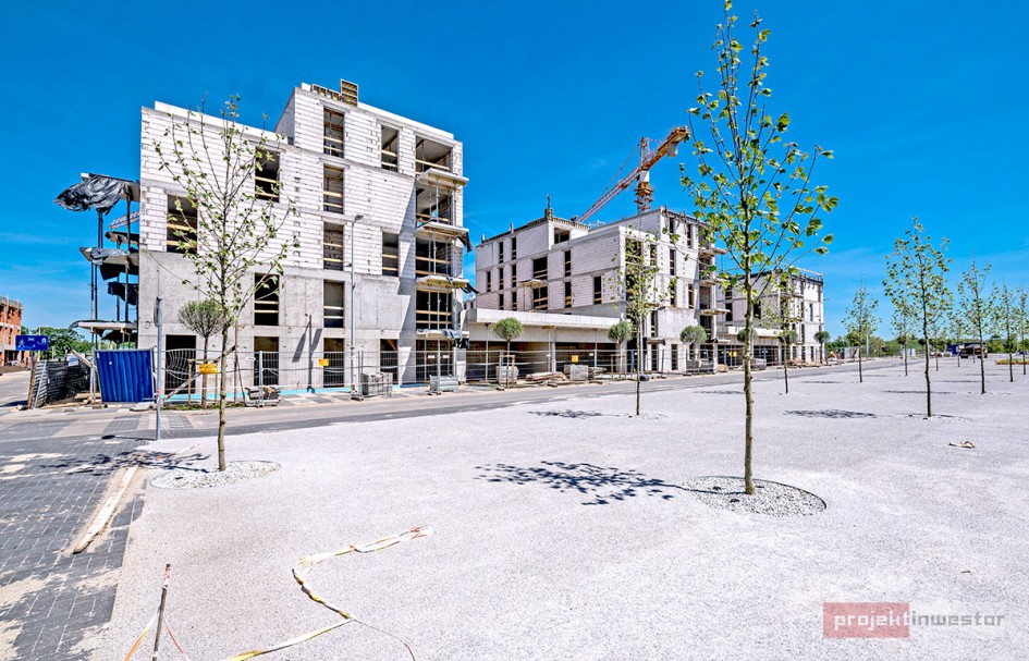 Najnowsze zdjęcia z budowy osiedla modelowego WuWa2 we Wrocławiu, realizowanego przez różnych deweloperów.