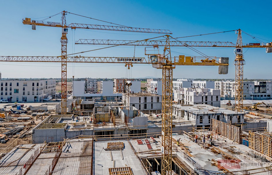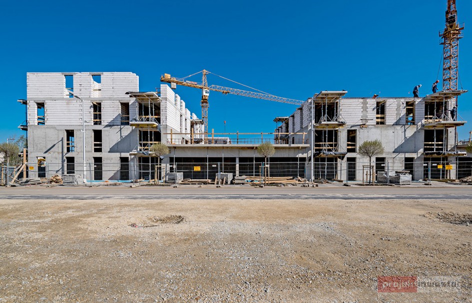 Najnowsze zdjęcia z budowy osiedla modelowego WuWa2 we Wrocławiu, realizowanego przez różnych deweloperów.