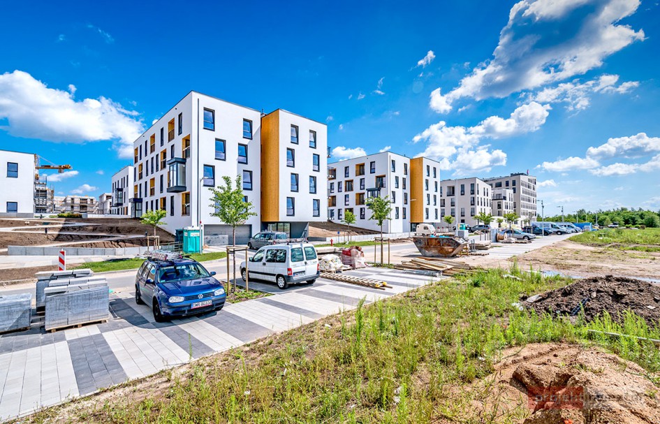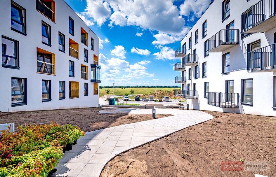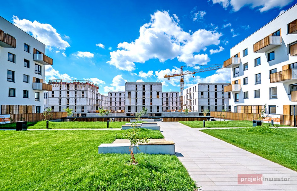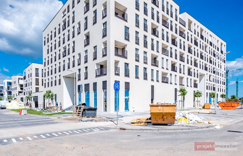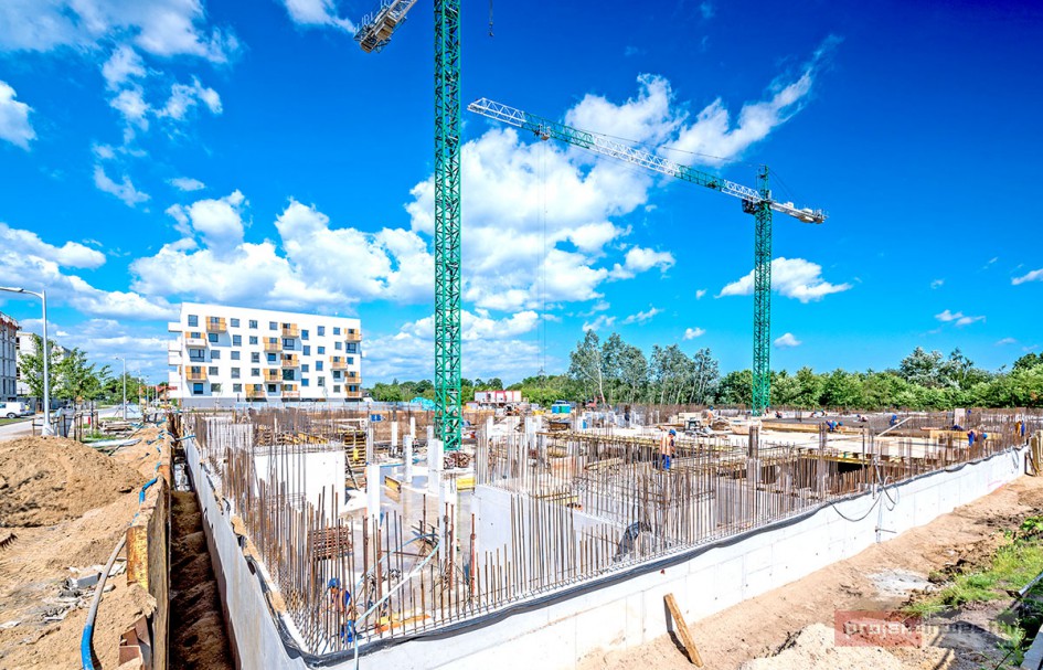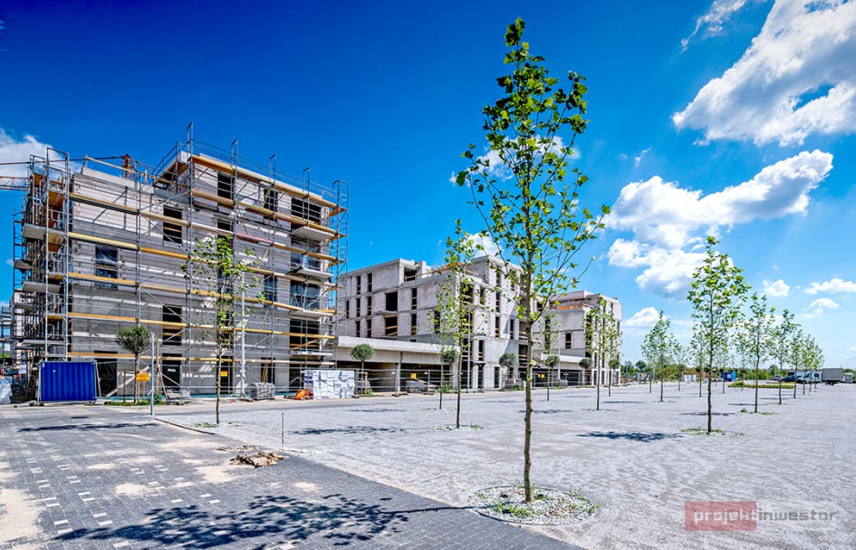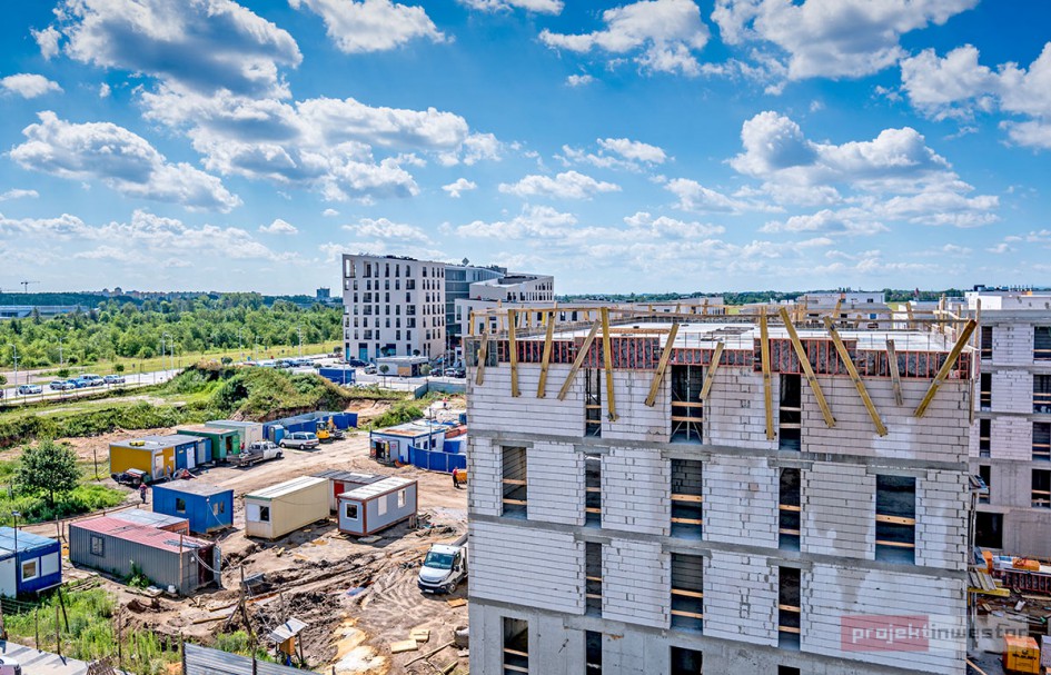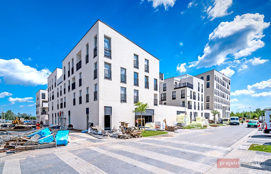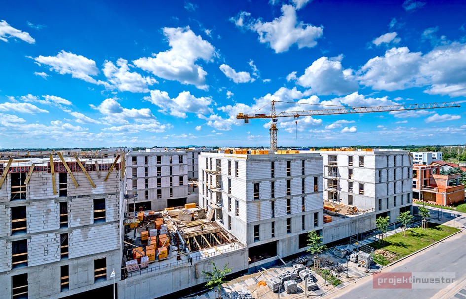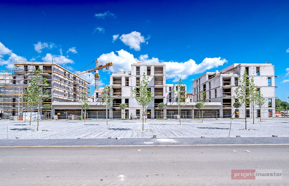 Najnowsze zdjęcia z budowy osiedla modelowego WuWa2 we Wrocławiu, realizowanego przez różnych deweloperów.