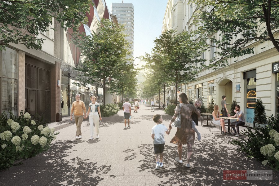 Przebudowa ulicy Chmielnej, widok z Placu Pięciu Rogów w kierunku Pasażu Wiecha, źródło: Urząd m.st. Warszawy