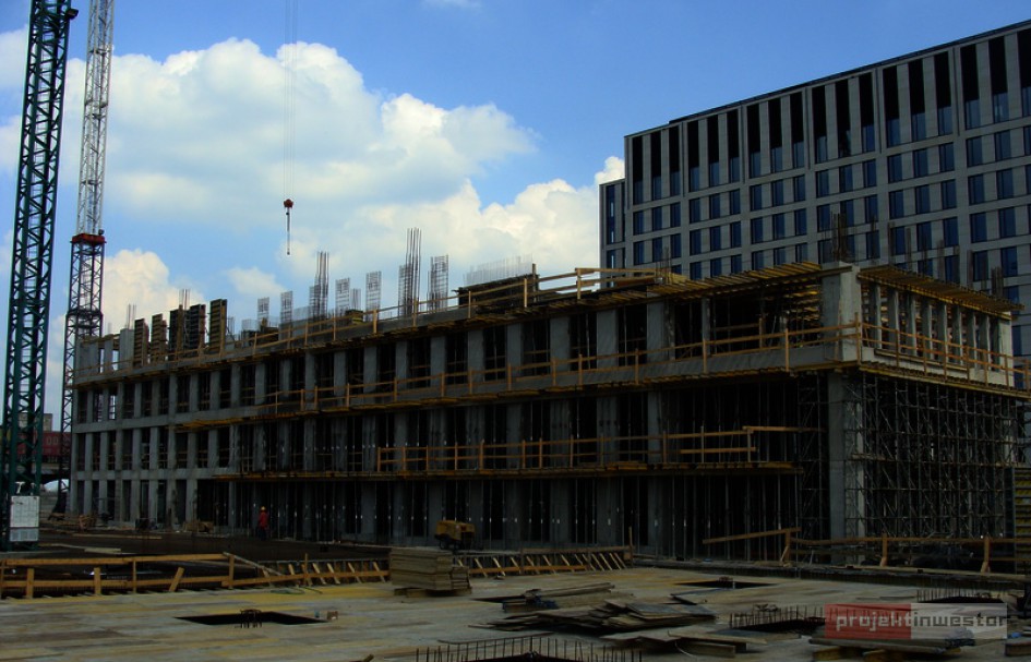 Trwa budowa II etapu O3 Business Campus w Krakowie. Aktualnie wykonywane są roboty zbrojarskie oraz betonowanie elementów żelbetowych budynku.