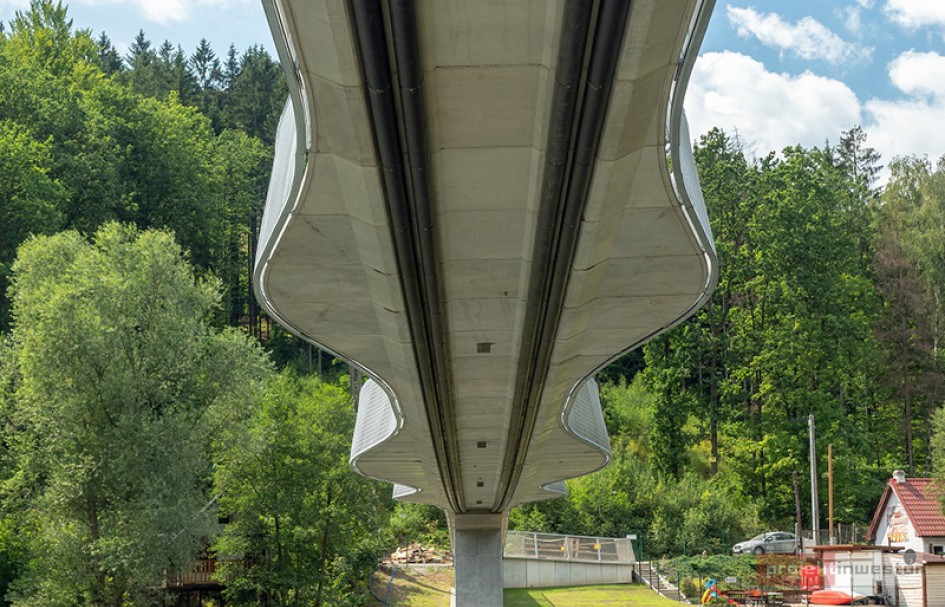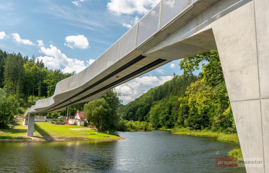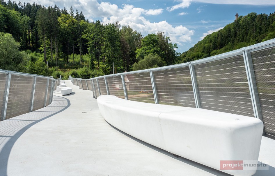 Mowa o kładce wstęgowej nad jeziorem Bystrzyckim w Zagórzu Śląskim (powiat wałbrzyski). To trzecia konstrukcja wstęgowa w Polsce i jedna z kilkunastu na świecie.