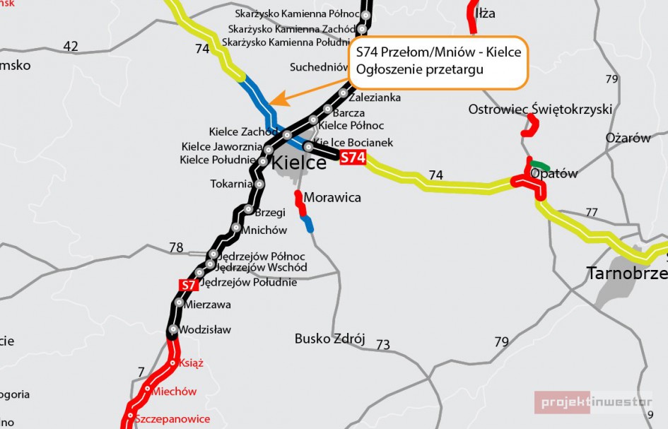 Ośmiu oferentów jest zainteresowanych zaprojektowaniem i wybudowaniem trasy S74 z Kielc do Mniowa. Odcinek od węzła Kielce Zachód to kolejna, po obwodnicy Opatowa, inwestycja w ciągu drogi ekspresowej S74, realizowana w województwie świętokrzyskim w ramach rządowego Programu Budowy Dróg Krajowych.