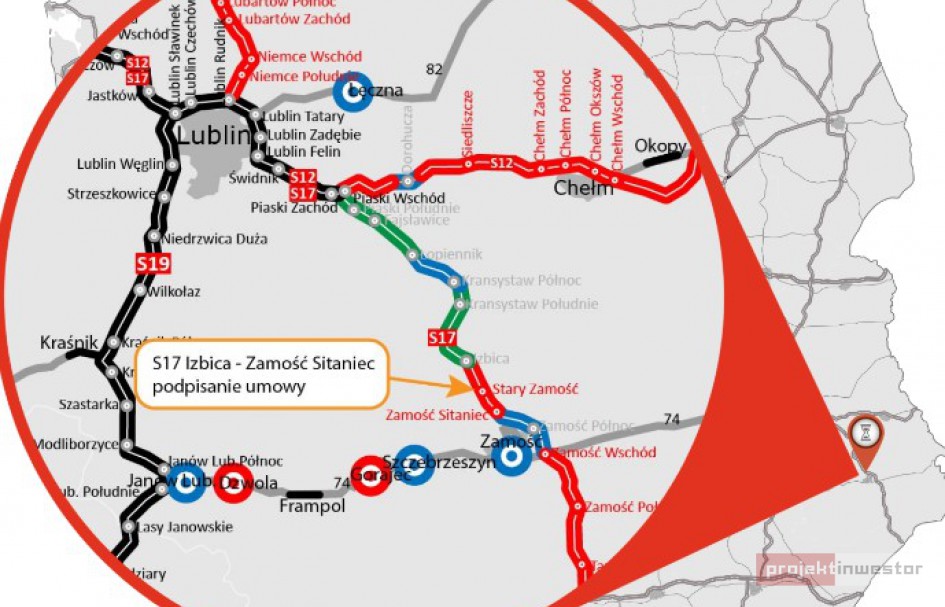 Generalnym wykonawcą tego odcinka jest konsorcjum w składzie: GAP Insaat, Fabe Polska oraz Side Midas Stroy. Umowa na zaprojektowanie i budowę dziesięciokilometrowego odcinka drogi ekspresowej S17 ma wartość około 504 mln złotych.