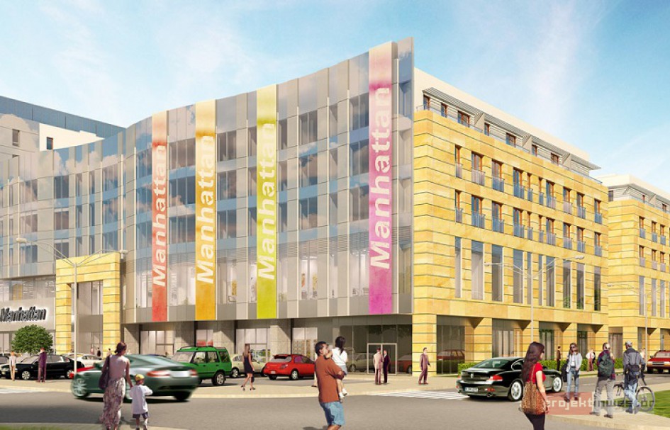 Manhattan będzie łączyć funkcję handlową z mieszkaniową. Inwestycja będzie oferować łącznie 156 mieszkań, od kawalerek mierzących 24 mkw. do przestronnych apartamentów mierzących nawet 90 mkw. Ponadto obiekt zaoferuje najemcom ponad 13 000 mkw. powierzchni na dwóch kondygnacjach. W centrum handlowym znajdą się popularne marki odzieżowe, najemcy z branży kosmetyczno-drogeryjnej, sklepy z asortymentem sportowym, wyposażeniem wnętrz, sprzętem RTV/AGD oraz multimediami, a także supermarket, restauracje i kawiarnie. Z myślą o zmotoryzowanych klientach w Manhattanie zaplanowano 570 miejsc parkingowych. 160 miejsc postojowych przeznaczonych zostanie dla lokatorów części mieszkaniowej obiektu.
