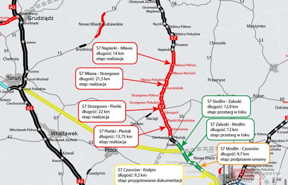 Wykonawca podpisał dziś umowę z Generalną Dyrekcją Dróg Krajowych i Autostrad na zaprojektowanie i budowę odcinka drogi ekspresowej S7. Kontrakt dotyczy wykonania odcinka od Modlina do Czosnowa o długości około 9,7 kilometrów. Wartość umowy to 598,8 mln złotych.