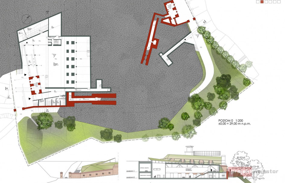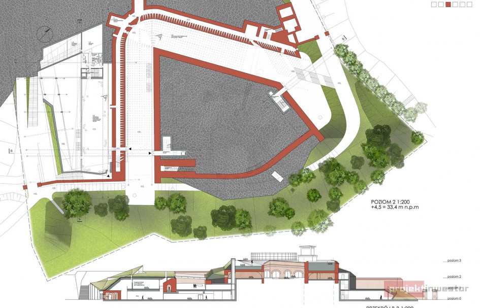 Zwycięska praca składa się z dwóch części tj. zabytkowych obiektów wchodzących w skład Zespołu Redity Napoleońskiej oraz planowanego nowego budynku, w znacznym stopniu przeszklonego, który ulokowany zostanie w nasypie Galerii Przeciwskarpowej. Obie części zostaną komunikacyjnie ze sobą połączone. Równocześnie rewaloryzacji poddany zostanie cały kompleks Redity, czyli m.in. sucha fosa, przeciwskarpa z Galerią Przeciwskarpową, podziemne korytarze komunikujące Reditę z przeciwskarpą, Brama Północna z Wartownią oraz Wartownia Bramy Południowej, a także dawne biura za murem Carnot’a.