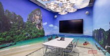- Szczególnie ważne było realistyczne przedstawienie konwencji każdej z sal, co zostało uzyskane przede wszystkim dzięki grafikom wyklejonym na każdej z płaszczyzn. Fototapety płynnie przechodzą na szklane drzwi, w postaci perforowanego nadruku, zapewniającego przezroczystość – mówi Anna Głowala, projektant Advertis.