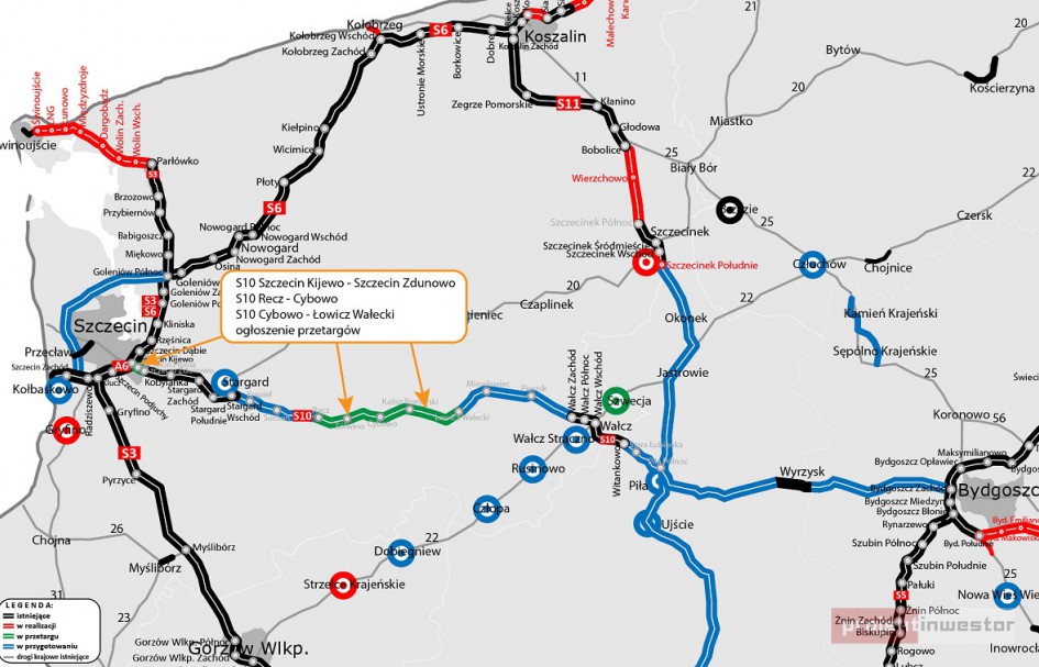 Poszukiwani są generalni wykonawca do realizacji fragmentów trasy Szczecin-Piła. Ich łączna długość wynosi ponad 36 kilometrów. Zadaniem ekspresówki w tym regionie będzie wyprowadzenie ruchu tranzytowego z obszarów zabudowanych, m.in. ze szczecińskiej Płoni.
