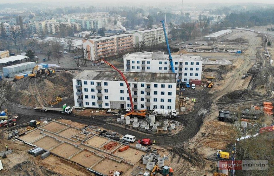 Zaledwie czterdzieści dni roboczych potrzebował generalny wykonawca aby postawić dwa czterokondygnacyjne budynki mieszkaniowe. Oczywiście nie byłoby to możliwe gdyby inwestycja powstawała w tradycyjny sposób. Na osiedlu realizowanym w ramach rynkowej części rządowego programu Mieszkanie Plus zastosowano technologię prefabrykatów.