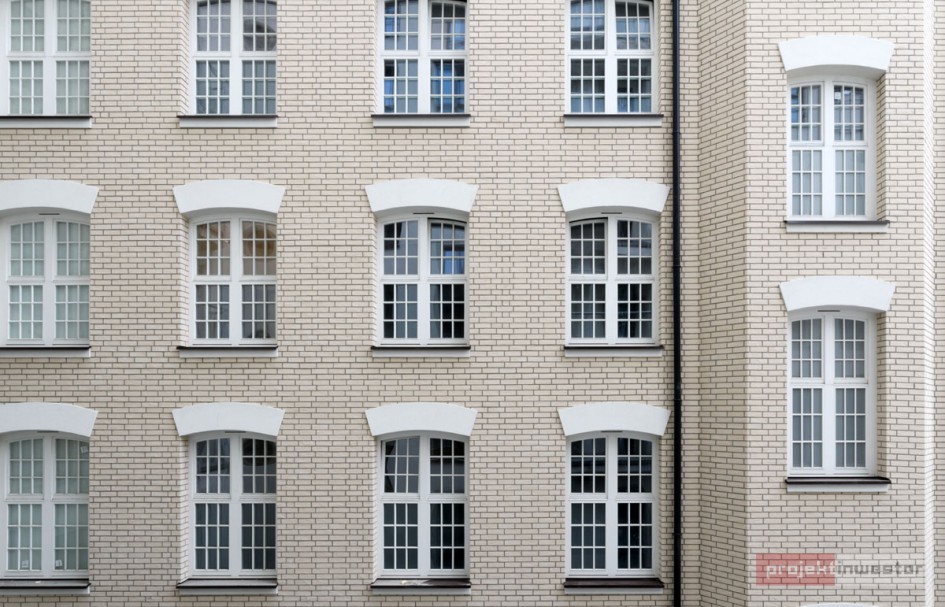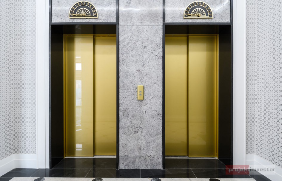 Na elewacji frontowej zamontowano dekoracyjny drewniany moduł, będący nawiązaniem do klasycznej architektury art déco. W ten sposób podkreślono reprezentacyjny charakter pierzei z głównym wejściem. Drewniana struktura świetnie komponuje się z kamieniem naturalnym – piaskowcem – zastosowanym do wykończenia budynku, a już wkrótce elewację ozdobi mozaika ze szlachetnych kamieni z elementami z 24-karatowego złota autorstwa Lubosza Karwata.