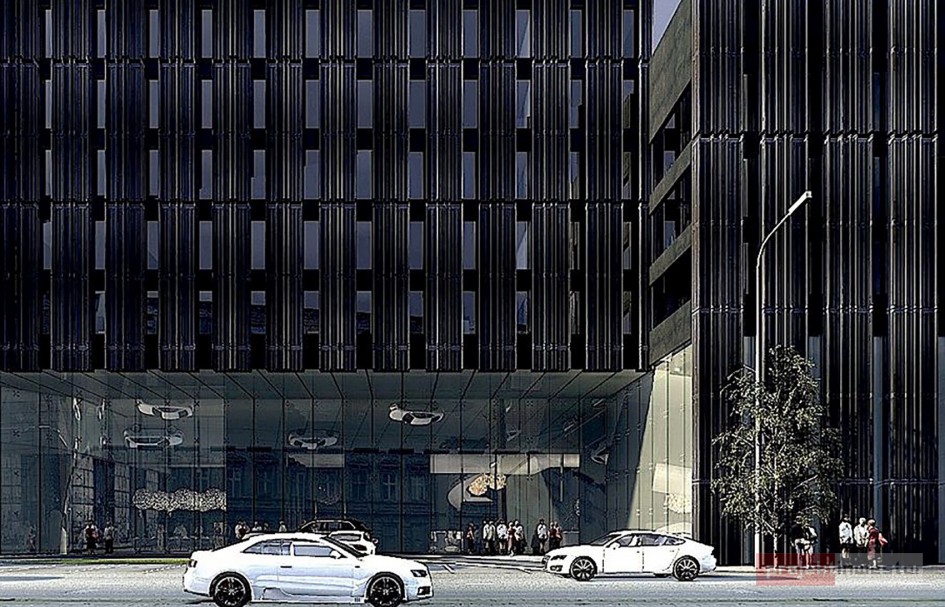 Mocny w wyrazie, jednocześnie uproszczony w bryle, w założeniu twórców projektu ma podnieść rangę ulicy. Ciemna, metalowa elewacja z wąskimi oknami ma czynić wrażenie niedostępnego obiektu. Zabieg ten poprawić ma warunki akustyczne w głośnym fragmencie ulic Grzybowskiej i Żelaznej. Masywna bryła skontrastowana została z dwukondygnacyjnym w pełni przeszklonym podcieniem otwartym na życie miasta.