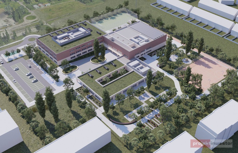Przetarg ogłoszono w połowie grudnia zeszłego roku. Nowy kompleks edukacyjny pomieści tysiąc uczniów oraz dwustu przedszkolaków i składać się będzie z czterech bloków: szkolnego liczącego trzy piętra, dwupiętrowego sportowego oraz dwóch parterowych bloków - żywieniowego i przedszkolnego.