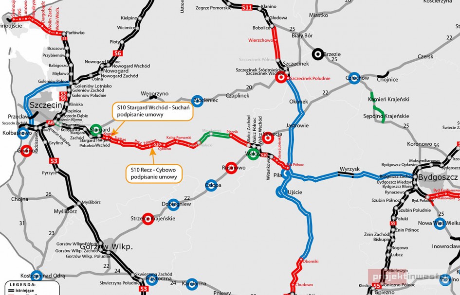 Podpisy na dokumentach złożyli wykonawcy odcinków Stargard - Suchań i Recz - Cybowo. Nieco krótszym fragmentem zajmie się Budimex. Zadaniem firmy jest oddanie do użytku odcinka o długości 13,8 kilometrów. Kontrakt, który pochłonie 450 mln złotych, dotyczy fragmentu od Stargardu do węzła Suchań.