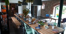 Do dyspozycji gości są pokoje rodzinne oraz dwuosobowe. Łącznie jest ich sześć. Miejscem integracji jest wspólny, ogromny, drewniany stół zlokalizowany na parterze. Skoro w folwarku toczy się slow life to nie może zabraknąć slow food czyli posiłków przygotowywanych z lokalnych produktów.