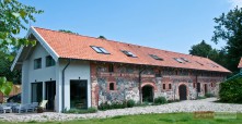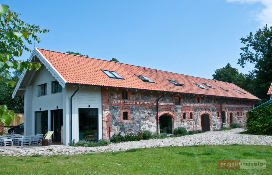 Za projekt przebudowy stodoły odpowiadają właściciele folwarku. Początkowo mieli tylko wyremontować dach stodoły, jednak w trakcie prac postanowili zaadaptować budynek pod nowe funkcje. Ściany stodoły wykonane są z lokalnego kamienia i cegły w oryginalnej formie, podobnie jak ceramiczna dachówka charakterystyczna dla malowniczej okolicy.