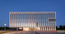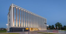 Największym atutem budynku jest z pewnością prosta, nowoczesna i niezwykle estetyczna elewacja, wykonana w formie elewacji wentylowanej, wykończona grafitowymi płytkami ceramicznymi oraz pilastrami z płyt aluminiowych w kolorze kremowym. Projektanci umieścili na niej specjalne wcięcie, które obejmuje nowocześnie wyposażone sale konferencyjne. Dodatkowym, niezwykle ważnym wizualnie elementem elewacji biurowca jest również subtelne, ale rzucające się w oczy oświetlenie - podobnie jak oświetlenie wewnątrz i wokół budynku starannie dobrane przez inwestora.